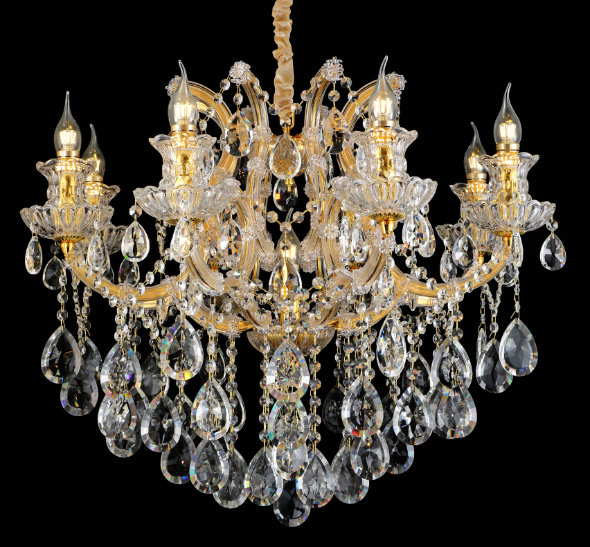 This European-style gold-plated crystal chandelier blends classic design with elegant aesthetics, perfect for upgrading the ambiance of living rooms, dining rooms, or luxury spaces.